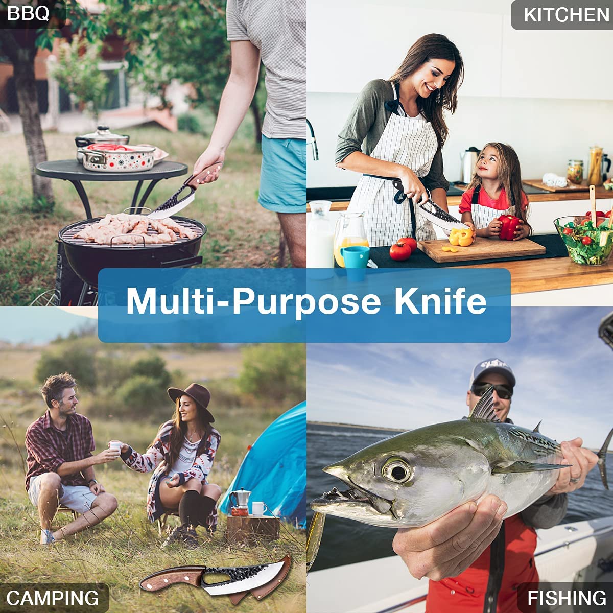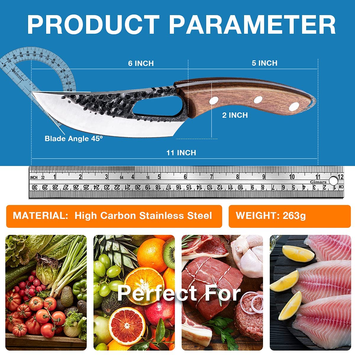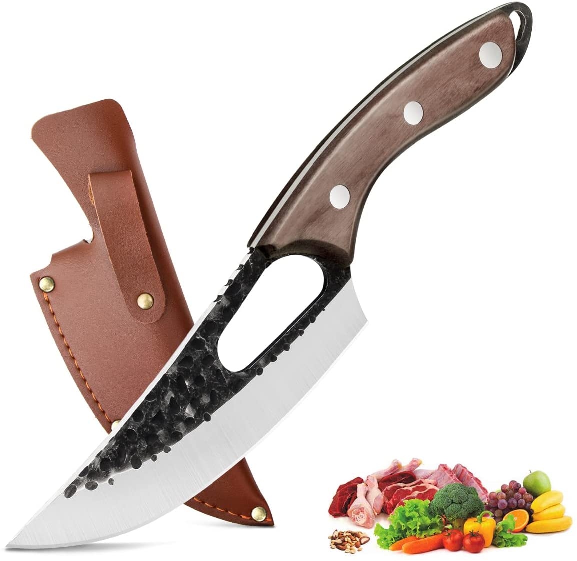*[MULTIFUNKTIONAL]-Das Ausbeinmesser handgeschmiedet kann für alle Arten von Gemüse, Obst und Fleisch verwendet werden. Das Messer ist zum Hacken, Schneiden und Würfeln konzipiert, und wäre Ihr guter Helfer für Küche, Grill, Camping, Wandern.