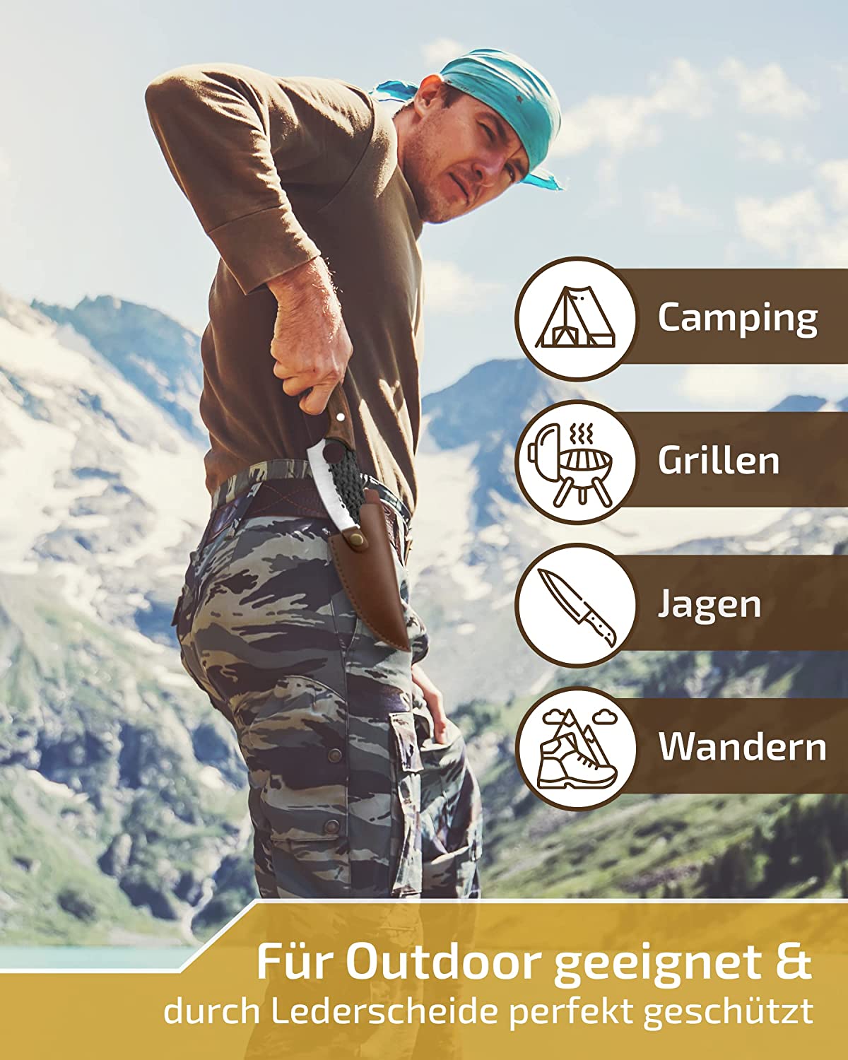 Produktbeschreibung Küchenmesser Scharf, Kochmesser Handgeschmiedet, Ausbeinmesser 15cm-Scharfe Edelstahlklinge mit Lederscheide & Ergonomischer Griff (in Braun und Schwarz)