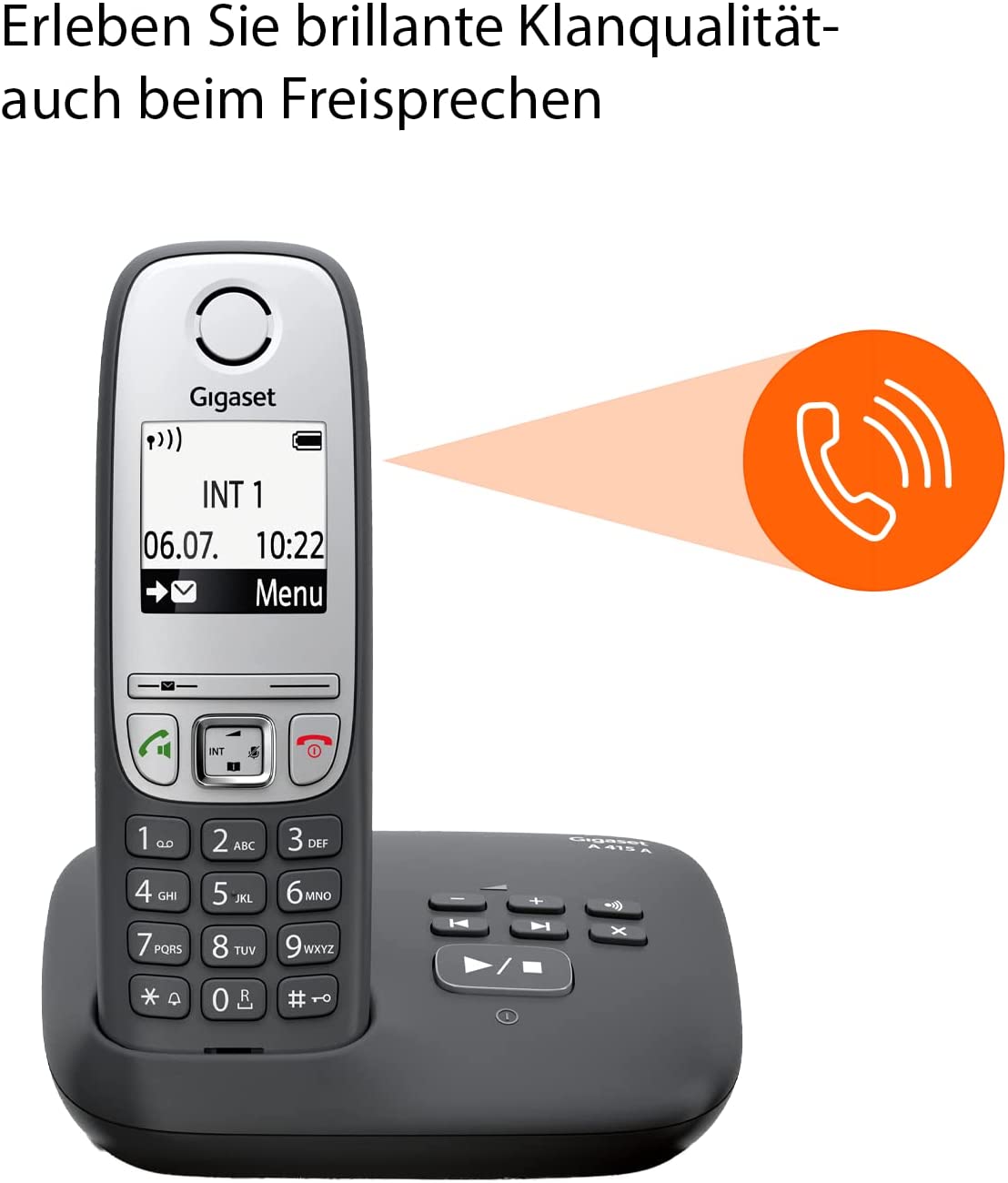 Gigaset A415A Schnurloses Telefon DECT mit Anrufbeantworter. Produktbeschreibung Gigaset A415A, Schnurloses Telefon DECT mit Anrufbeantworter, Freisprechfunktion, Kurzwahltasten, Telefonbuch mit 100 Einträgen, Kontrastreiches Grafik Display und leichter Bedienung, schwarz